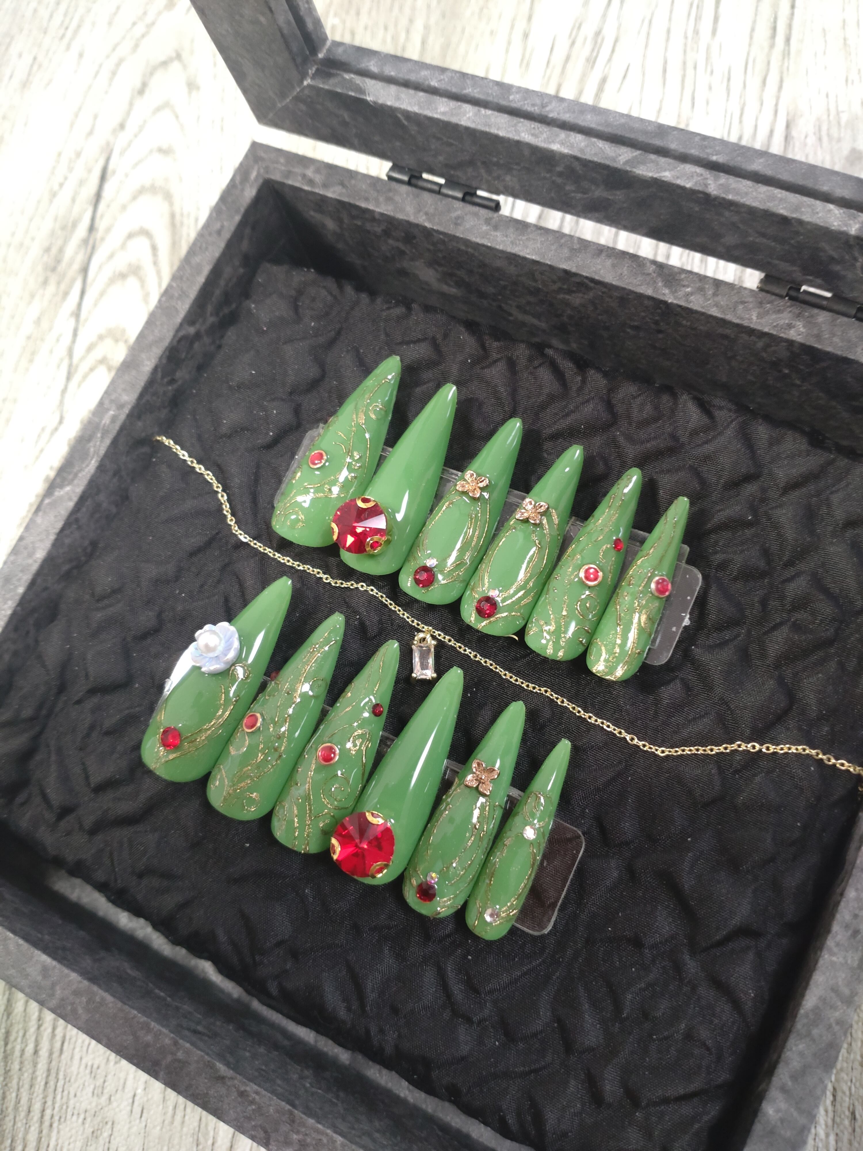 【リニューアル記念】Deep Green Jewelry Set(ネイルチップ10枚&ネックレス)